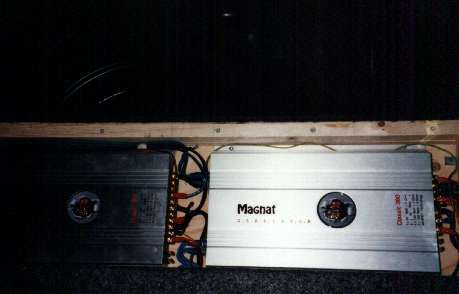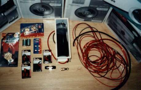 De versterker die ik in de kadett had liggen was een Magnat classic gladiator 360, en ben daar nog steeds zeer tevreden mee, dus de planning is om precies dezelfde versterker bij te kopen. Maar eerst ging ik naar mijn plaatselijke hifidealer, om een aantal stekkers, en subwooferkabels te gaan halen, deze vond ik best wel aan de dure kant dus ging ik in een blad zoeken (hifi inbouwblad) naar dealers, ik vond een dsl dealer en ging daar meteen naartoe, daar kocht ik 2 basreflex pijpen, +kabel 25mm kwadraat 2 x - kabel 10mm kwadraat, nog meer vergulde stekkertjes, zekering blok van dsl, en nog wat staafzekeringen. Een dag eerder had ik al een zekering verdeeldoosje gekocht bij de plaatselijke electrozaak, die een beetje hifispul heeft.